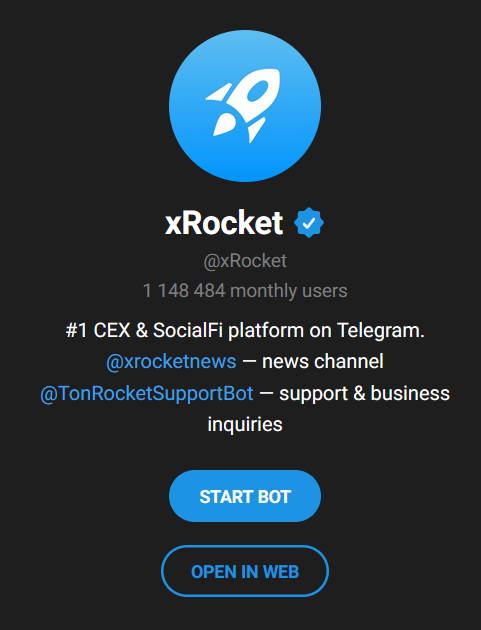- Mini App in Telegram: Wallet/exchange and more with a proper user interface in Telegram chat with the bot. The mini app version already includes most xRocket features, with the rest coming soon.