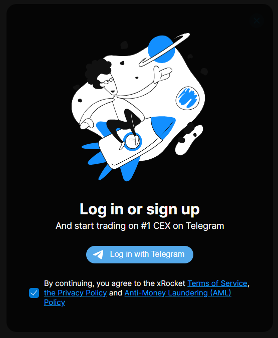 Start @xRocket bot in Telegram to automatically create your xRocket wallet/account linked to your Telegram account. Simple as that! We don’t need your phone number or email.