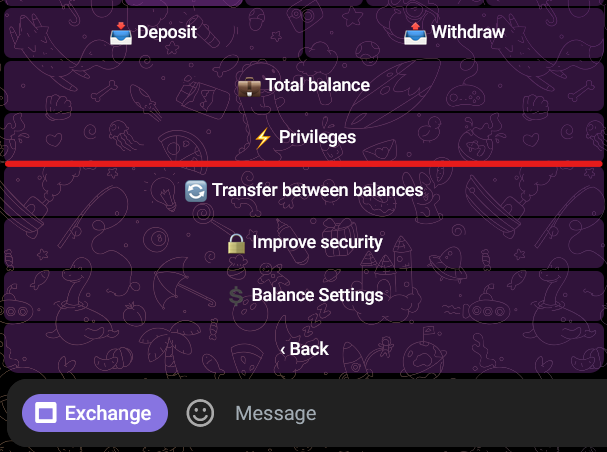 The privileges page can be accessed from My wallet menu: