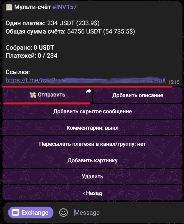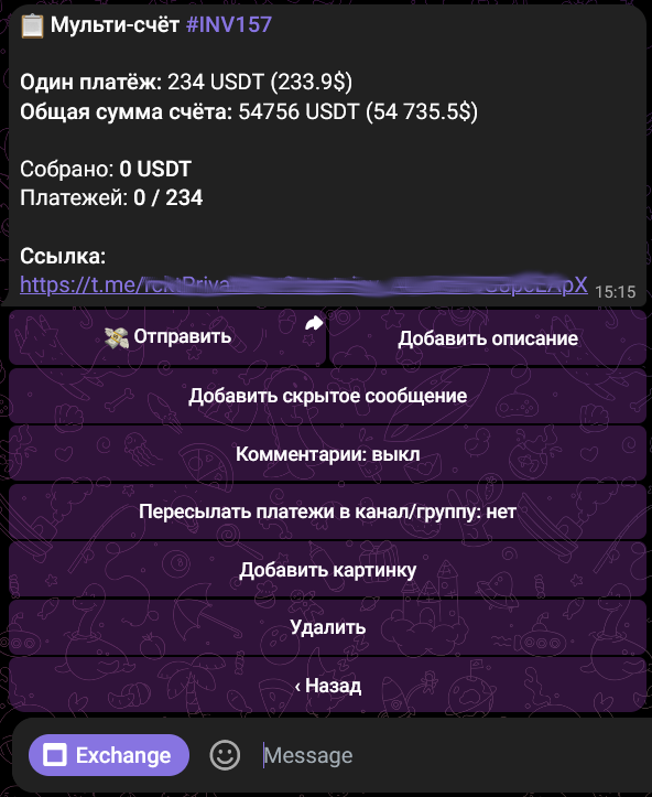 Вы можете создавать счета для получения одного или нескольких платежей через xRocket или на блокчейн-адрес.