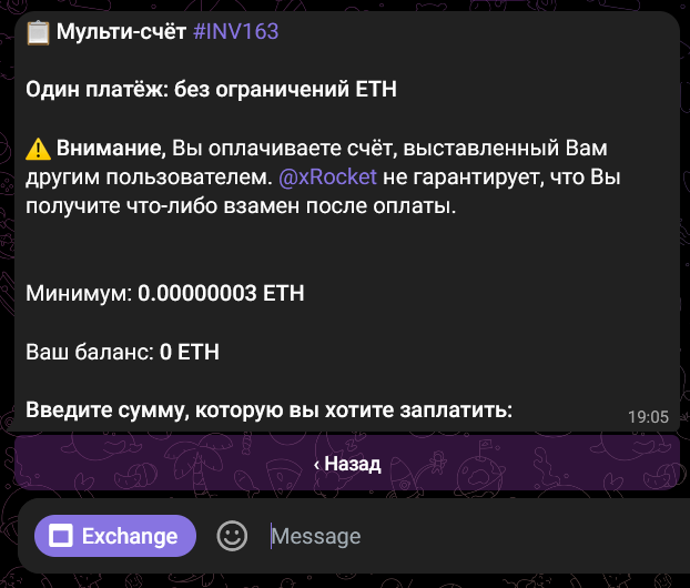 - Когда пользователь завершит платеж(и), создатель счета получит платежи на свой кошелек xRocket.