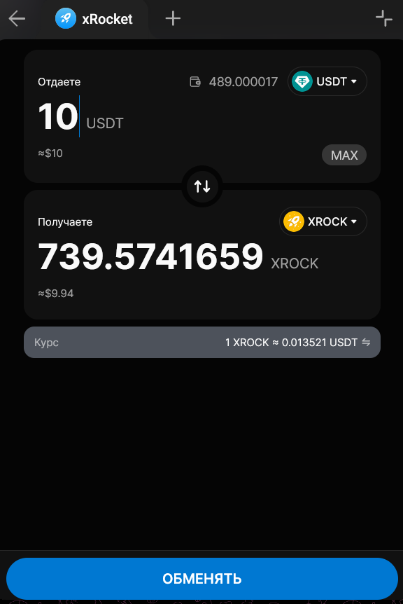 - Подробности обмена смотрите в чате с ботом xRocket.