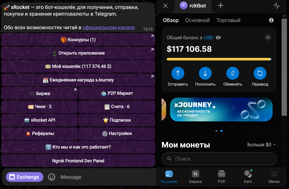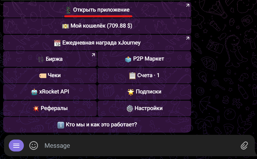 Для оптимальной работы некоторые функции xRocket автоматически переключают вас между ботом и расширенным интерфейсом Мини-приложения.