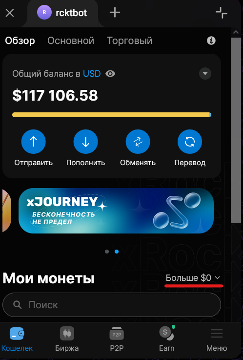 Как вывести средства из кошелька xRocket.