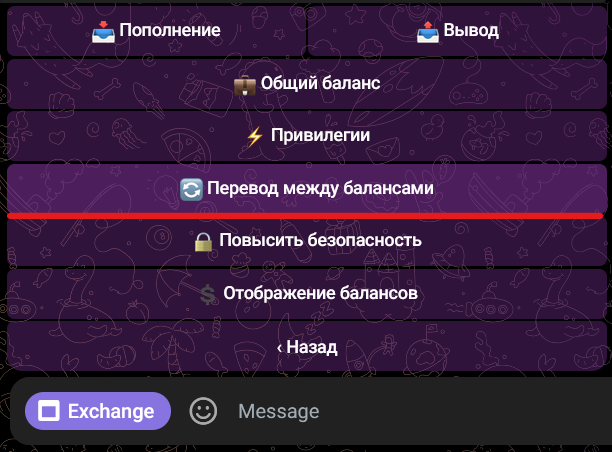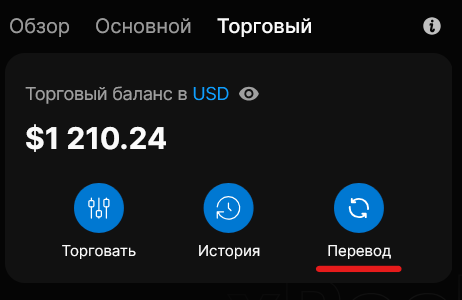 - Основной баланс используется для пополнений, выводов средств и внутренних переводов между пользователями.